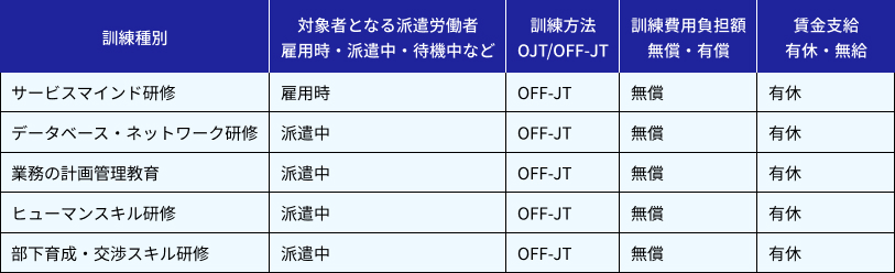 - 派遣労働者のキャリア形成支援制度に関する事項訓練内容